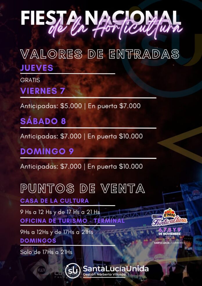 la Fiesta Nacional de la Horticultura es un evento que se llevará a cabo del 6 al 9 de noviembre de 2025 en Santa Lucía, Corrientes.