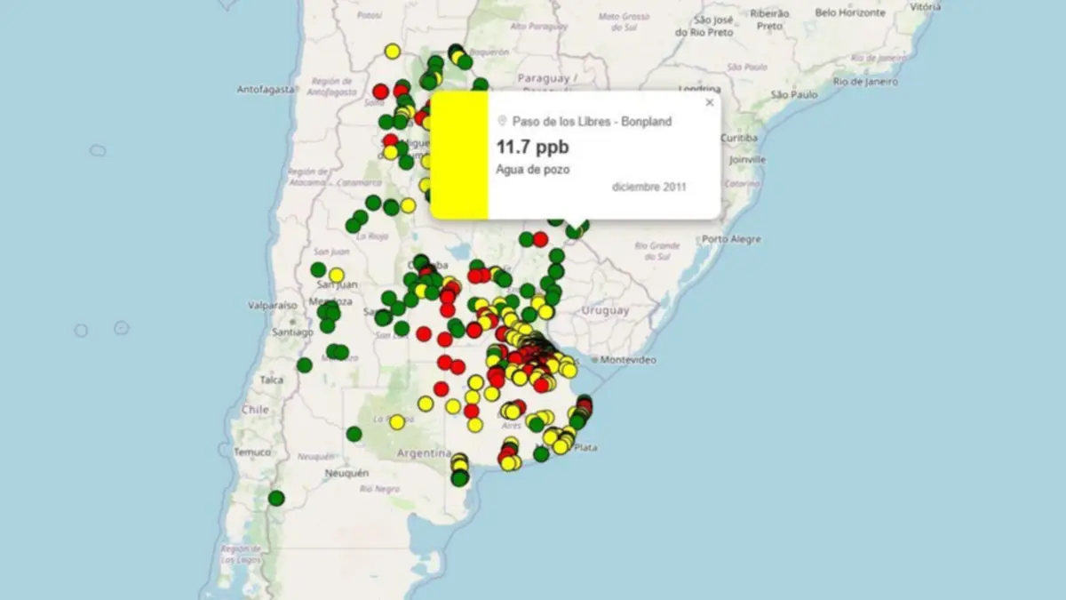 En Corrientes, las localidades señaladas fueron Sauce, con niveles altos, y Bonpland, en el departamento de Paso de los Libres, que figura en una categoría de atención. Según el mapa del arsénico, los registros disponibles corresponden a diciembre de 2011, lo que refuerza la necesidad de realizar estudios actualizados.
