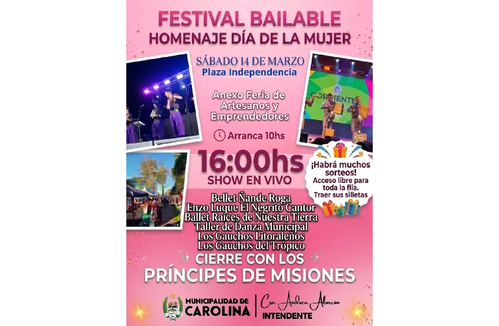La comunidad está invitada a participar de un gran festival homenaje a las mujeres, una propuesta cultural y recreativa pensada para disfrutar en familia y compartir una jornada especial llena de música, arte y tradición. La celebración se llevará a cabo el sábado 14 de marzo en la Plaza Independencia de Carolina, un espacio emblemático de la localidad que será escenario de múltiples actividades durante toda la jornada.